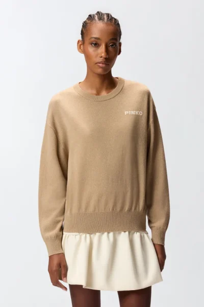 SWEATER WITH LOVE BIRDS MAXI-LOGO PINKO
