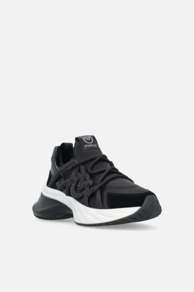 ARIEL SATIN/COW SUEDE/GLITTER CAGE BLACK SNEAKERS PINKO
