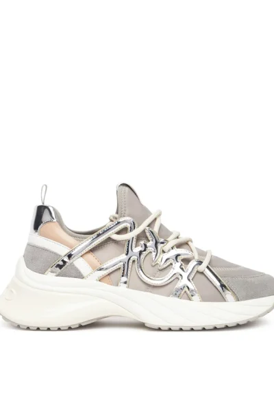 ARIEL SATIN/COW SUEDE/MIRROR CAGE PEARL SNΕAKERS PINKO
