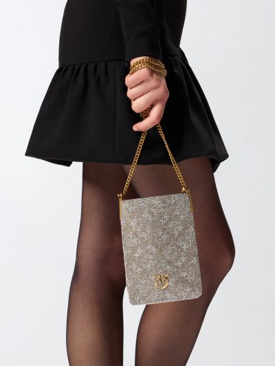 FULLY RHINESTONED LEATHER PHONE CASE PINKO