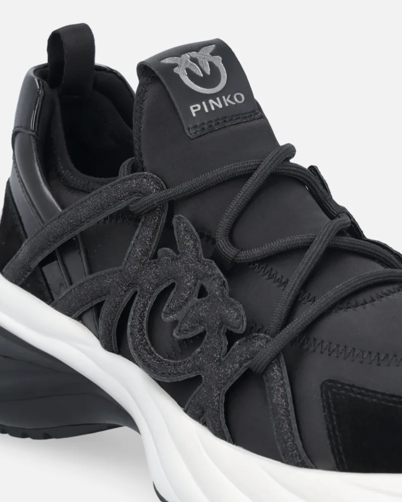 ARIEL SATIN/COW SUEDE/GLITTER CAGE BLACK SNEAKERS PINKO