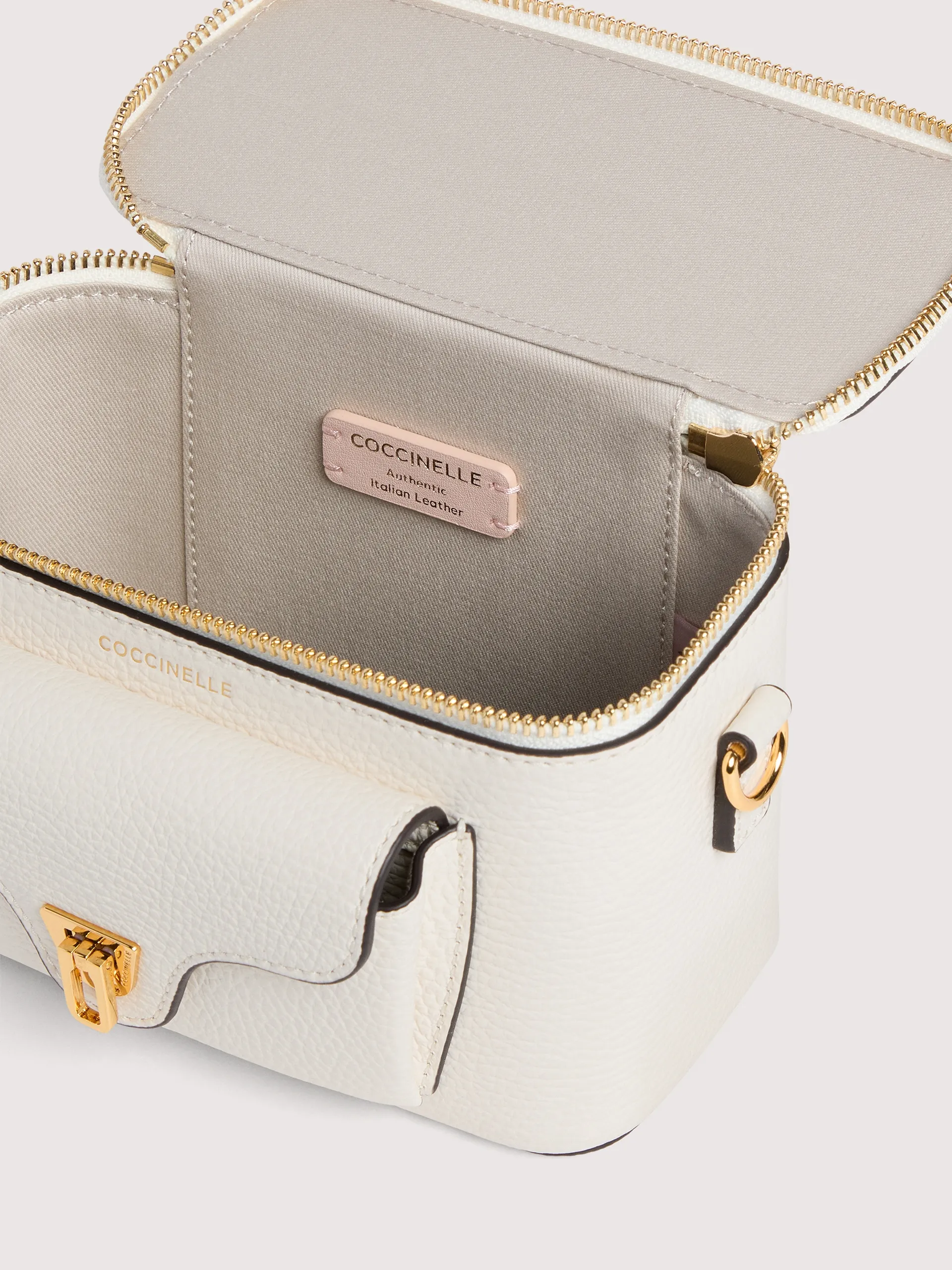 Η Coccinelle Beat είναι μια από τις εμβληματικές σειρές της μάρκας: το χαρακτηριστικό κλείσιμο με πτερύγιο και πέννα αποτελεί το σύμβολο της ταυτότητας της Coccinelle. Αυτή η μίνι θήκη νεσεσέρ με δερμάτινο λουράκι ώμου αποτελεί τον τέλειο συνδυασμό δομής και απαλότητας, πρακτικότητας και σύγχρονου σχεδιασμού. Αυτό το μοντέλο είναι κατασκευασμένο από δέρμα που έχει υποστεί επεξεργασία με εξειδικευμένα μηχανήματα και στη συνέχεια έχει υποστεί αναδίπλωση για να διατηρηθεί η απαλότητά του. Πρόκειται για ένα πολύ ανθεκτικό, εύκολο στο καθάρισμα δέρμα, καθιστώντας το ιδανικό για καθημερινή χρήση.