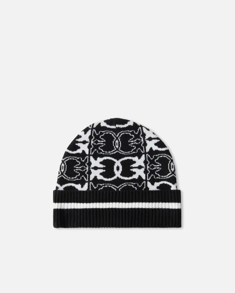 Σκούφος από πλεκτό σύμμεικτο ύφασμα βισκόζη με ριμπ ρεβέρ και μοτίβο με λογότυπο ζακάρ σε αντίθεση σε όλη την επιφάνεια, που εκφράζει το στυλ της PINKO. Προστατευτείτε από το κρύο με στυλ με αυτό το απαραίτητο αλλά κομψό αξεσουάρ, μια ιδανική τελική πινελιά για κάθε casual look.