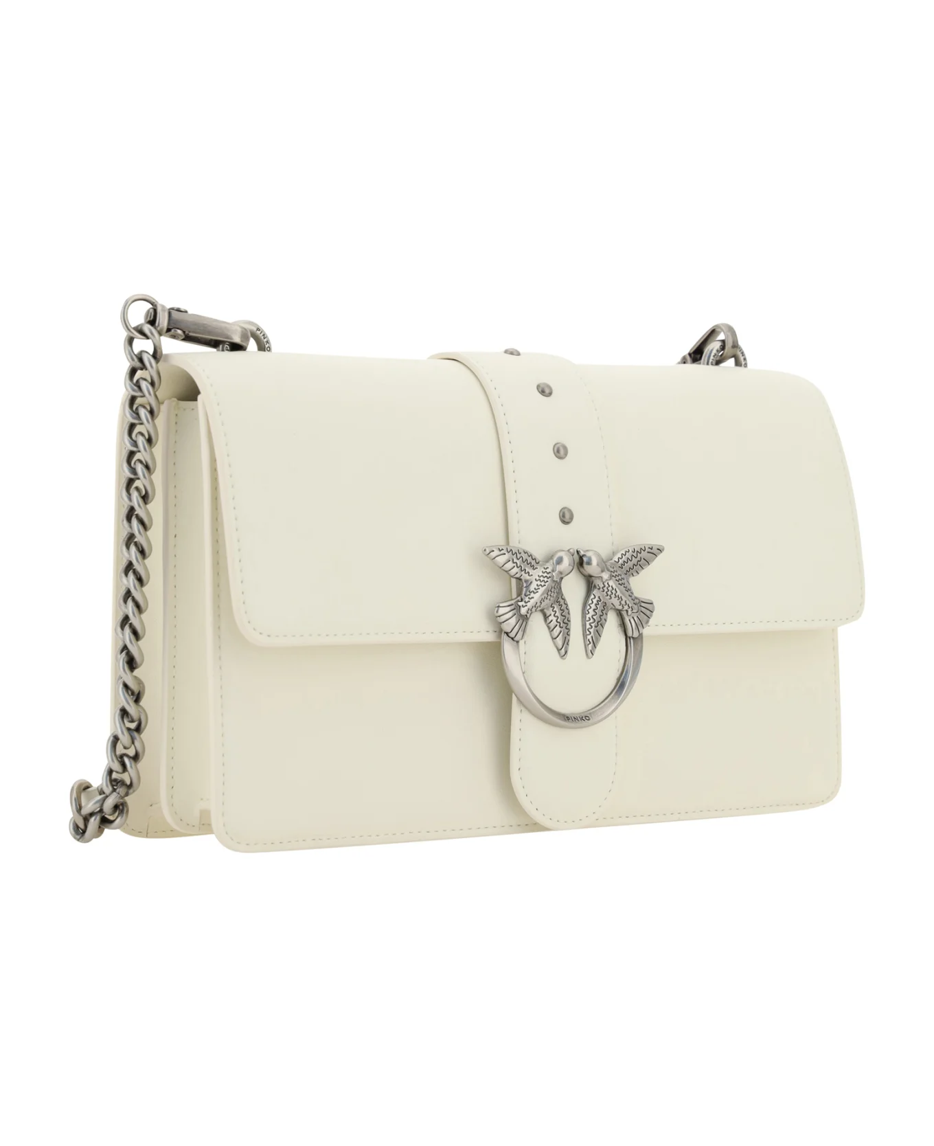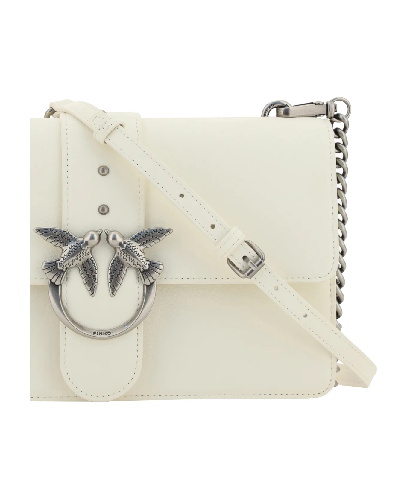 Classic Love Bag Icon σε απαλό δέρμα με μεταξένια αίσθηση. Το κούμπωμα με δερμάτινο λουράκι με καρφιά διακοσμείται από την εμβληματική μεταλλική πόρπη Love Birds Diamond Cut. Το αξεσουάρ διαθέτει εσωτερικό με επένδυση από μικροσουέτ, με κεντρική διαχωριστική τσέπη με φερμουάρ και τσέπη ολίσθησης. Ο αποσπώμενος ιμάντας ώμου συνδυάζει την κλασική αλυσίδα στρογγυλής σύνδεσης με ένα πρακτικό, ρυθμιζόμενο δερμάτινο μαξιλάρι ώμου.