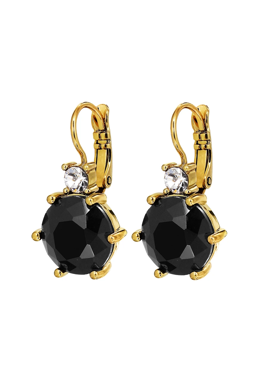 BEGONIA-όμορφο γαλλικό σκουλαρίκι με γάντζο, φτιαγμένο με ένα μεγάλο, μοναδικό στρογγυλό κρύσταλλο που ολοκληρώνεται με ένα μικρότερο κρύσταλλο. Απλό, αλλά κομψό. Εδώ απεικονίζεται με ασπρόμαυρο κρύσταλλο σε χρυσή βάση. Μήκος περίπου 25 mm.