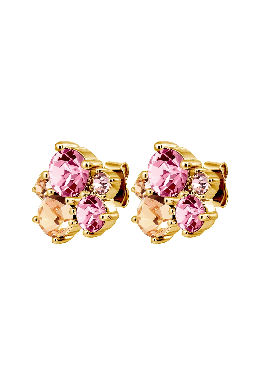 Το MINNIE είναι ένα σκουλαρίκι με καρφίτσες, με πολλαπλούς στρογγυλούς κρυστάλλους διαφόρων μεγεθών και χρωμάτων. Φορέστε το μόνο του ή σε συνδυασμό με άλλα σκουλαρίκια. Υπερκομψό, αλλά διακριτικό. Μήκος περίπου 12 mm. Σώμα από γυαλισμένο ορείχαλκο, καρφί από χειρουργικό ατσάλι. Εδώ απεικονίζεται με κρυστάλλους με ροζ πυρήνα και χρυσό φινίρισμα. ΔΑΝΙΚΟΣ ΣΧΕΔΙΑΣΜΟΣ – χωρίς κάδμιο, μόλυβδο και νικέλιο.