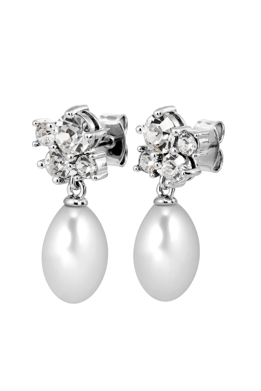 PETUN – σκουλαρίκι, με μπαρόκ λευκό απομίμηση μαργαριταριού κάτω από το πάνω μέρος, πλούσια διακοσμημένο με μικρούς κρυστάλλους τοποθετημένους σε ασύμμετρο σχέδιο. Κλασικό με άκρη. Σώμα από γυαλισμένο ορείχαλκο, γάντζο από χειρουργικό ατσάλι. Συνολικό μήκος περίπου 28 mm. Εδώ εμφανίζεται με λευκό κρύσταλλο και ασημί φινίρισμα. ΔΑΝΙΚΟΣ ΣΧΕΔΙΑΣΜΟΣ – χωρίς κάδμιο, μόλυβδο και νικέλιο.