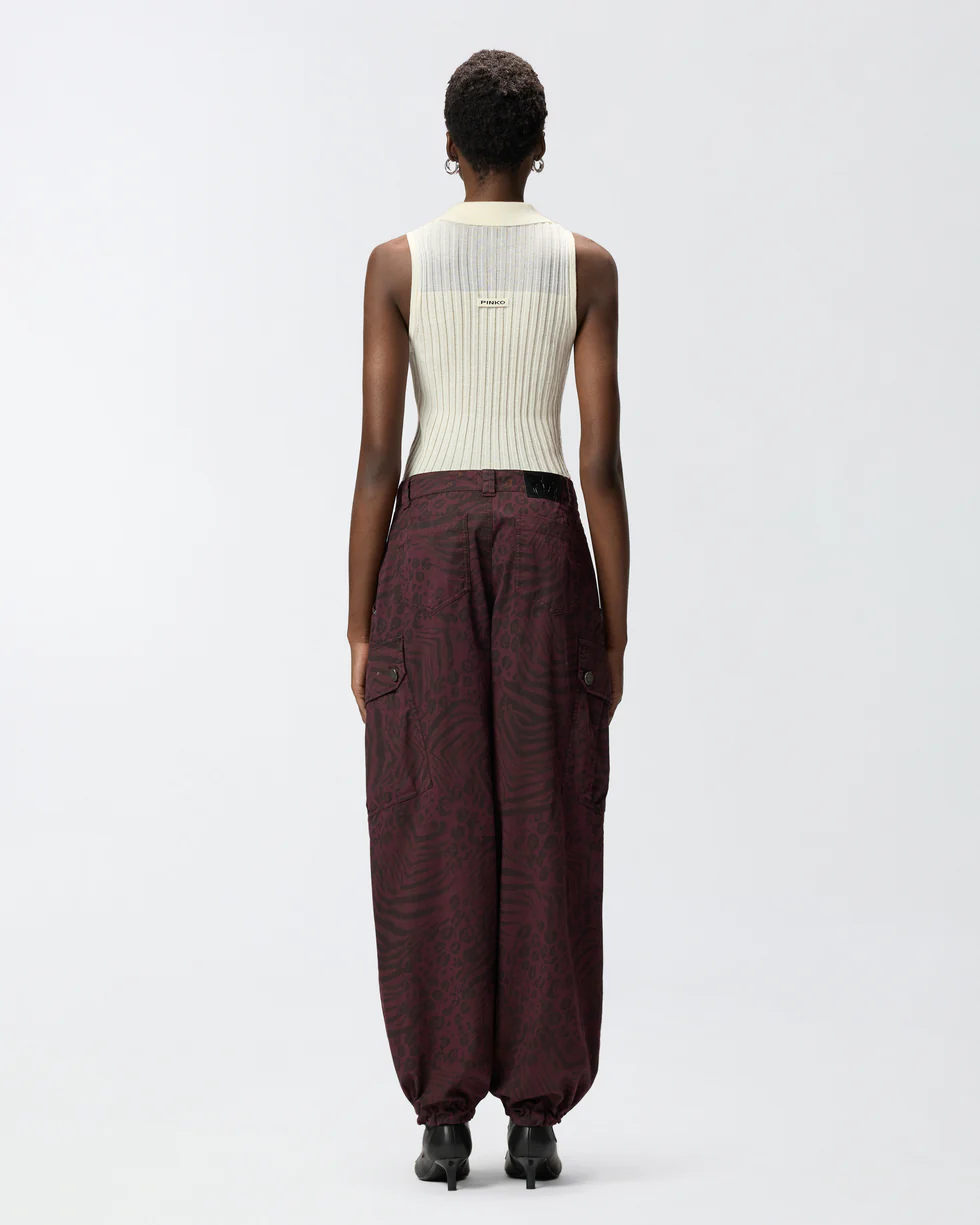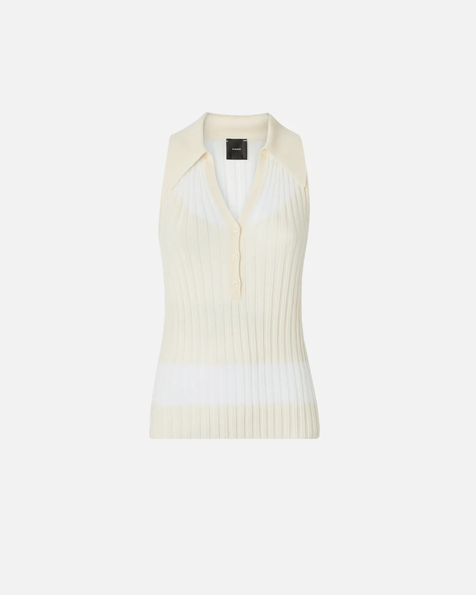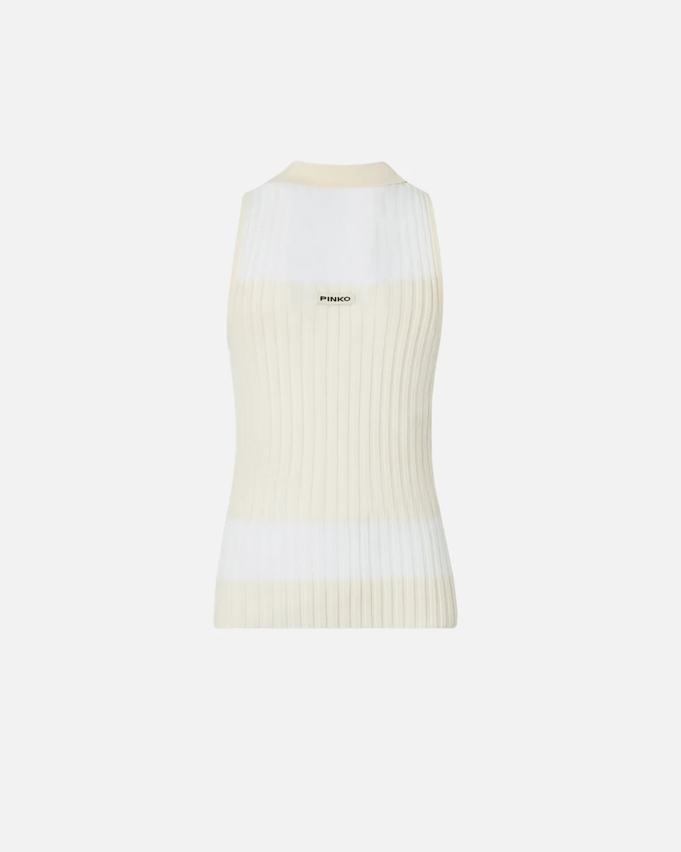 KNITTED SLEEVELESS POLO SHIRT WITH RIB KNIT PINKO