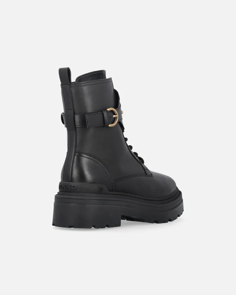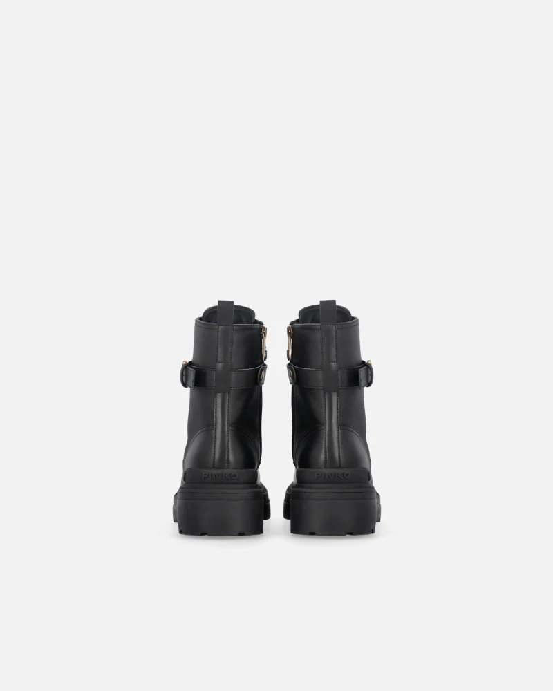 LEATHER ANKLE BOOTS WITH BRANDED FRONT STRAP PINKO