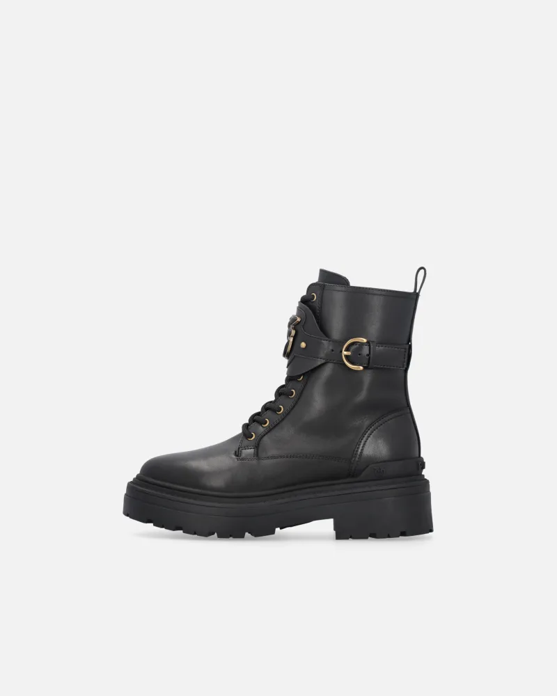 Μποτάκια τύπου αρβύλας με κορδόνια και ύψος μέχρι το μέσο της γάμπας, με ρυθμιζόμενο λουράκι με μεταλλική αγκράφα, διακοσμημένα μπροστά με το λογότυπο Love Birds με μεταλλικό περίγραμμα. Οι αρβύλες είναι δερμάτινες και διαθέτουν φερμουάρ στην εσωτερική πλευρά του λαιμού καθώς και θηλιά πίσω για να μπορούν να φορεθούν εύκολα. Συμπληρώνονται από λαστιχένια τρακτερωτή σόλα με τακούνι 5,5 cm, φόδρα και πάτο από δέρμα. Οι αρβύλες αυτές είναι ιδανικές για να προσθέσετε μια επιπλέον τολμηρή πινελιά στις casual εμφανίσεις σας.