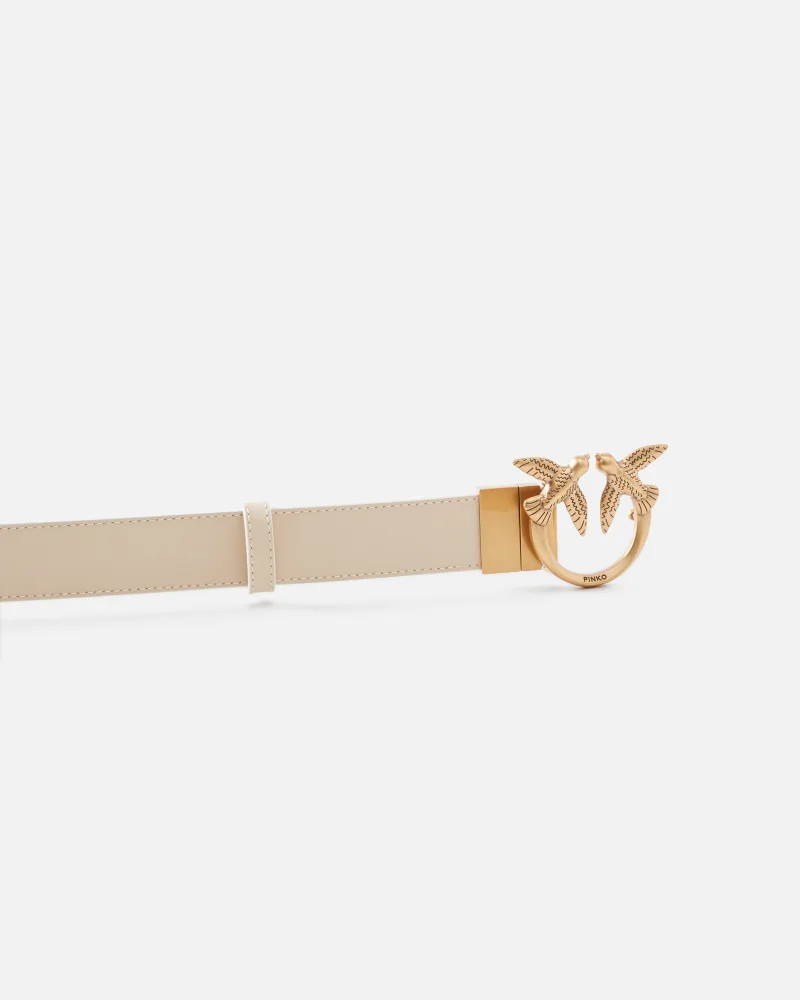 Ζώνη 3 cm από δέρμα διπλής όψης, η οποία μπορεί να φορεθεί είτε στο πλάι με λεία υφή είτε στο πλάι διακοσμημένο με μοτίβο μονογράμματος Love Birds. Η ζώνη είναι προσαρμοσμένη με πόρπη Love Birds Diamond Cut.