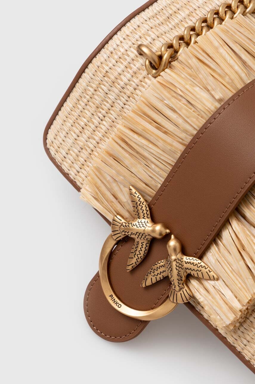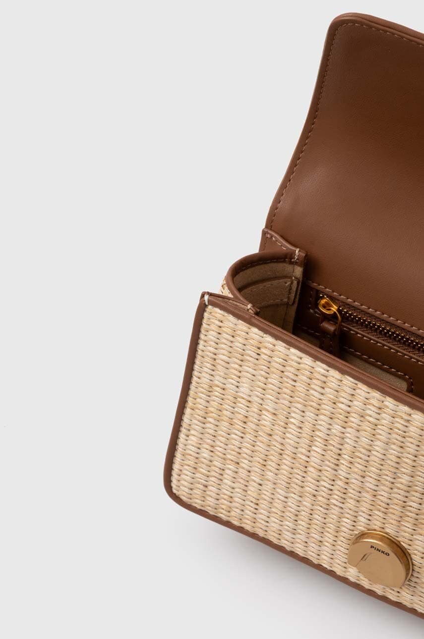 Μικρή τσάντα από τη συλλογή Pinko. Με κλείστρο μοντέλο από συνδυασμό υφασμένου υφάσματος και οικολογικού δέρματος.