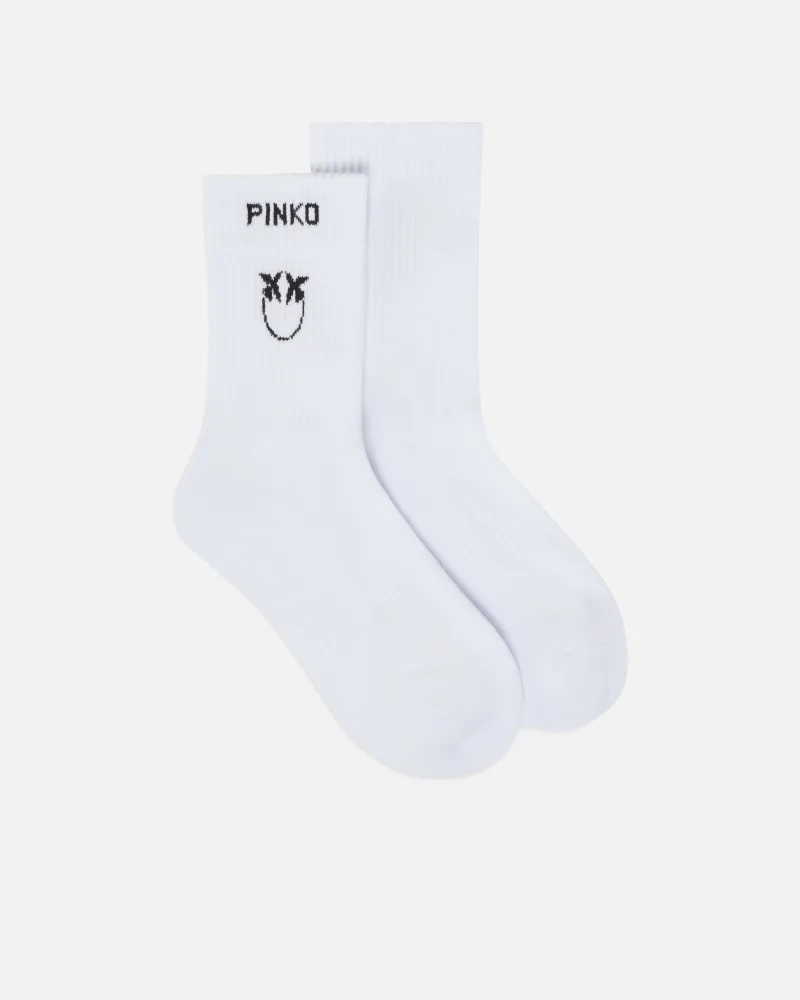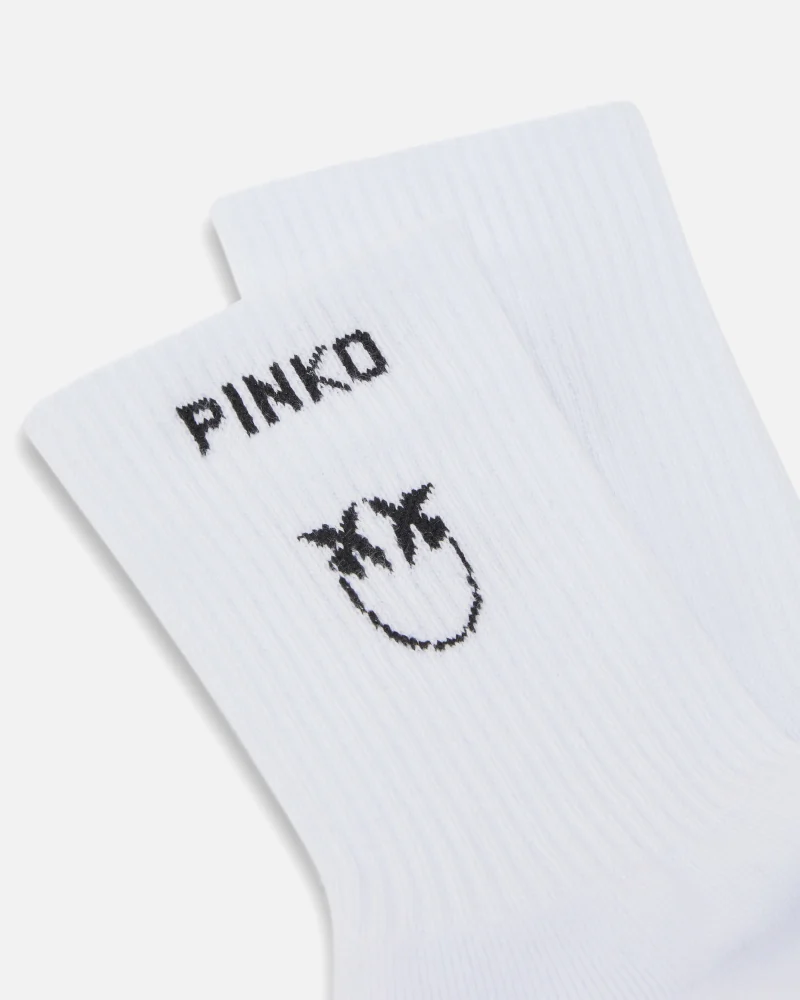 Κάλτσες μεσαίου μήκους, από ελαστικό βαμβάκι με σχέδιο ριμπ. Το λογότυπο Love Birds στο στέλεχος και το λογότυπο της PINKO σε χρωματική αντίθεση στο τελείωμα, αναβαθμίζουν αυτό το βασικό και ευέλικτο αξεσουάρ. Φορέστε το μοντέλο με ένα ζευγάρι αθλητικά παπούτσια και ολοκληρώστε τα looks σας με το αυθεντικό στυλ της PINKO.
