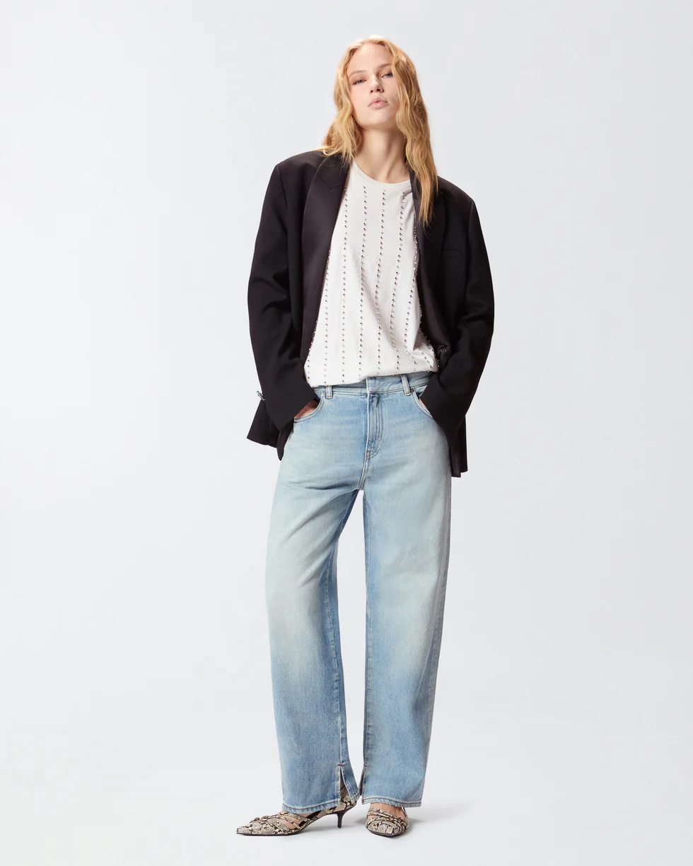 Κοντομάνικο t-shirt από βαμβακερό ζέρσεϊ ύφασμα με στρογγυλή λαιμόκοψη. Το ρούχο αποτελεί πραγματικό κόσμημα χάρη στο ιδιαίτερο σχέδιο με ρίγες με έμπνευση από τα ριγέ κοστούμια, που δημιουργείται από την εναλλαγή μικρών μεταλλικών στοιχείων σε σχήμα κύβου και καστονιών με κρύσταλλα, κεντημένα στο χέρι. Η ετικέτα με το λογότυπο PINKO πίσω χαρίζει την τελική πινελιά στυλ. Με ευκολοφόρετο αλλά κομψό σχεδιασμό, είναι ιδανικό σε συνδυασμό με ένα κλασικό παντελόνι και ένα σακάκι, αλλά και με ένα ιδιαίτερο τζιν.